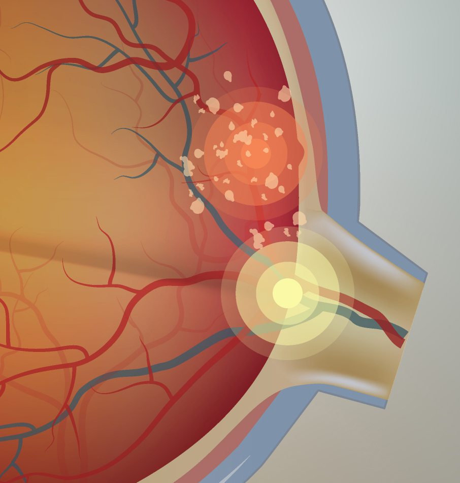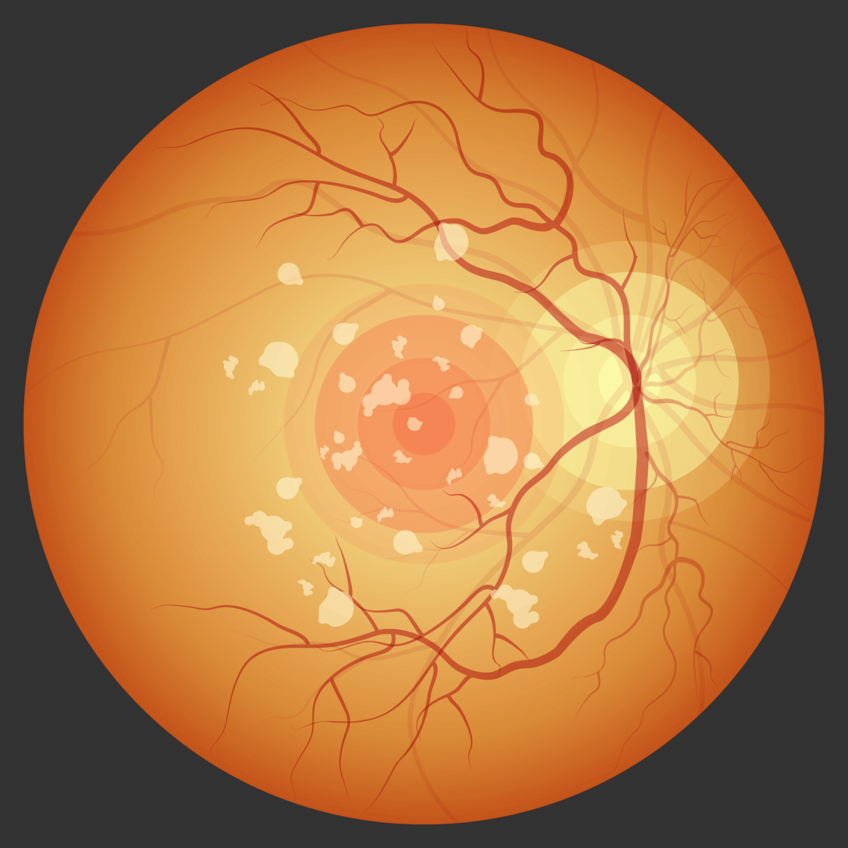 Im Frühstadium einer trockenen AMD schädigen so genannte Drusen die Sehzellen. Die Zellen sterben ab, was im weiteren Verlauf zum Sehverlust führt. Bei dieser „trockenen“ Form schreitet die Makuladegeneration meist langsam voran.