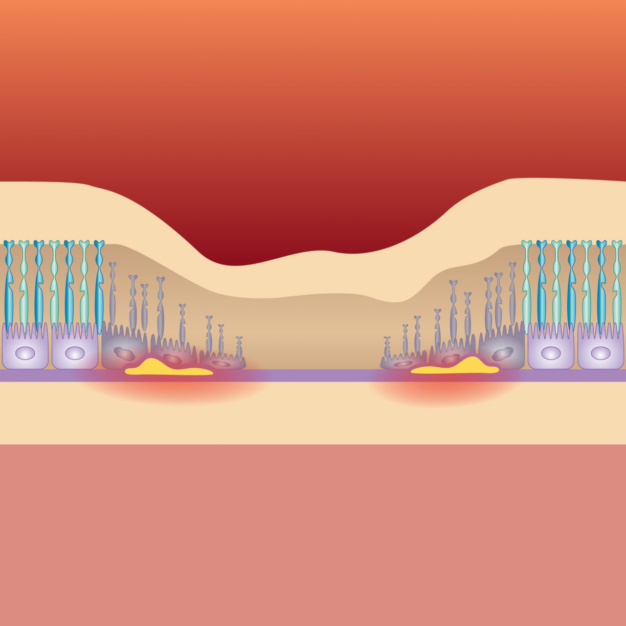Unter der Netzhaut befindet sich eine dünne Schicht, das sogenannte Pigmentepithel. Diese Schicht hat unter anderem die Funktion einer „Müllabfuhr“: Sie soll die Abfallprodukte der lichtempfindlichen Zellen verdauen und möglichst vollständig entsorgen.